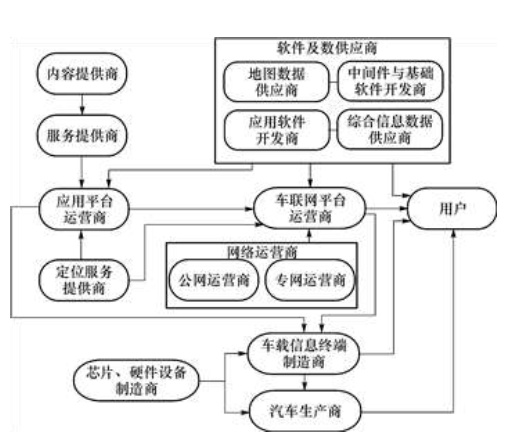 主要包括地圖數(shù)據(jù)、綜合信息數(shù)據(jù)、中間件及基礎(chǔ)軟件和應(yīng)用軟件開發(fā)等4 個(gè)子環(huán)節(jié)。地圖數(shù)據(jù)。地圖提供商為車聯(lián)網(wǎng)服務(wù)提供專用的電子地圖。專用電子地圖不但記錄各條道路自身的位置信息,還考慮了各條道路之間的相互關(guān)系、拓?fù)浣Y(jié)構(gòu)等。我國(guó)業(yè)內(nèi)通用做法是自行制造地理信息系統(tǒng)引擎和電子地圖。我國(guó)目前有11 家甲級(jí)測(cè)繪資質(zhì)的導(dǎo)航電子地圖單位可制作全國(guó)導(dǎo)航電子地圖,企業(yè)化運(yùn)作的有7 家。綜合信息數(shù)據(jù)。綜合信息數(shù)據(jù)環(huán)節(jié)包括深度興趣點(diǎn)數(shù)據(jù)、動(dòng)態(tài)交通信息數(shù)據(jù)等細(xì)分產(chǎn)業(yè)鏈環(huán)節(jié)。中間件及基礎(chǔ)軟件。中間件是國(guó)家信息化建設(shè)的核心基礎(chǔ)軟件,目前國(guó)內(nèi)中間件企業(yè)己經(jīng)掌握了部分核心技術(shù),能夠部分提供運(yùn)營(yíng)體系的基礎(chǔ)設(shè)施以及相關(guān)的軟件架構(gòu)體系。地理信息系統(tǒng)引擎是車聯(lián)網(wǎng)位置服務(wù)中經(jīng)常用到的中間件或基礎(chǔ)軟件,可以放置在單獨(dú)服務(wù)器上為平臺(tái)運(yùn)營(yíng)商實(shí)現(xiàn)地理信息與地理位置之間的轉(zhuǎn)化,也可以內(nèi)置在導(dǎo)航儀中為個(gè)人用戶提供服務(wù)。應(yīng)用軟件開發(fā)。應(yīng)用軟件是車聯(lián)網(wǎng)產(chǎn)業(yè)鏈上市場(chǎng)空間比較大的部分,這一環(huán)節(jié)和IT 渠道的關(guān)系最為緊密。